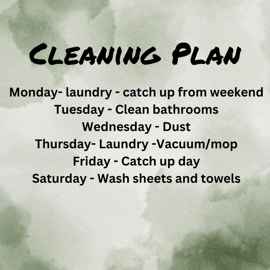 You would be surprised, if you were a fly on my wall (and there’s plenty of them this summer!!!), how many times these chores get skipped until next week. I’m not sure my house gets cleaned any more often than most summers, but it does help save my sanity to have a plan in order.
