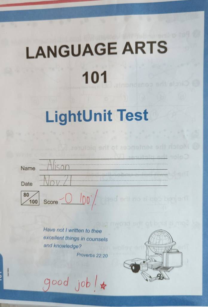 This summer Weston and I went to a CLE teacher training to get a better handle on what we are teaching in our schools. It was a lesson in fortitude for both of us! Every morning Mr. Hans would give us a lecture on the days topic. Topics included ‘A philosophy of Christian Education’, ‘Preparing to Teach’, ‘Interpersonal Relationships’, and ‘Managing the Classroom’. I took the elective workbook called ‘Administration’, also. Each of the lectures had corresponding workbooks (light units). There was reading at the beginning of every lesson that we were supposed to read, then do the work. After the hour long lecture, we were expected to spend the rest of the day filling in the workbooks. We had three and a half days to do this and it was a crunch to get it done. But we stuck with it and finished in time!